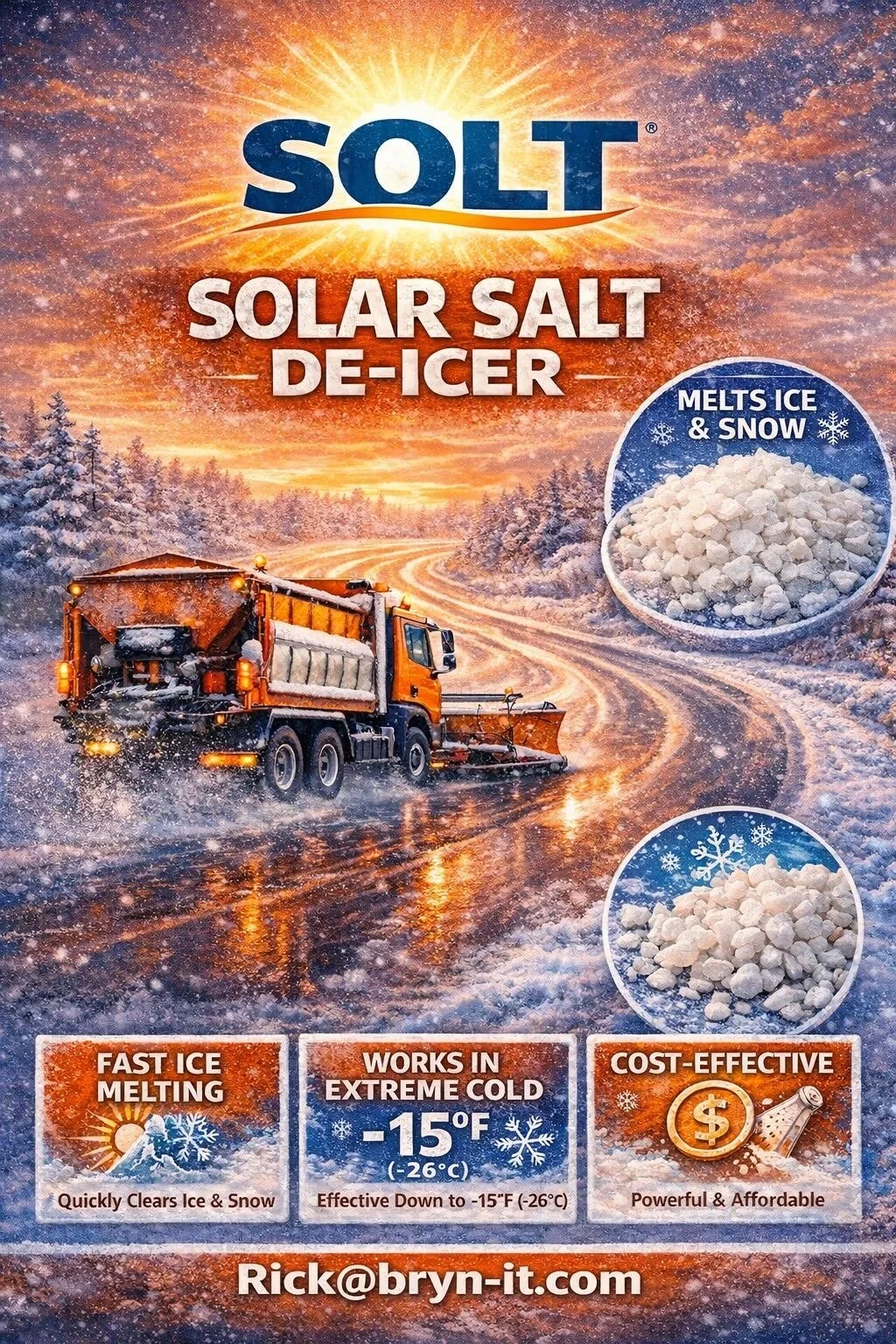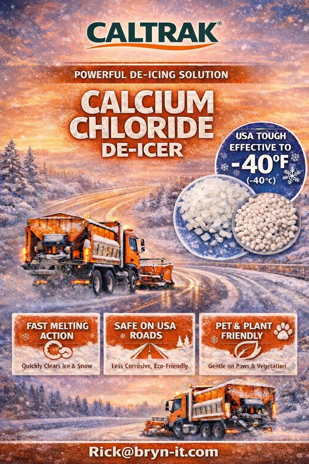 We have now grown to offer commercial bulk quantities of our Bryn™ product line to construction and industrial concerns for ice-melting and dust control across the United States.